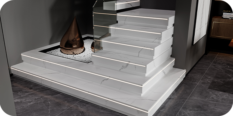 Perfect for elegant transitions with matching edge and riser details.